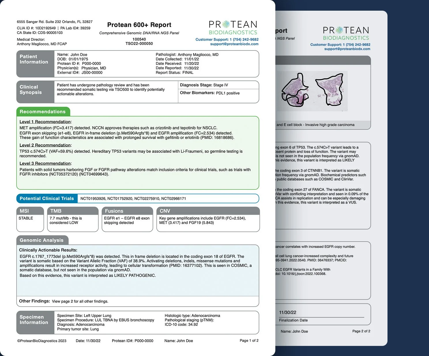 The Protean 600+ test is part of the Protean MAPS® system, and is designed to provide the most comprehensive information regarding actionable targets in a specimen, to identify approved treatments and clinical trial opportunities.